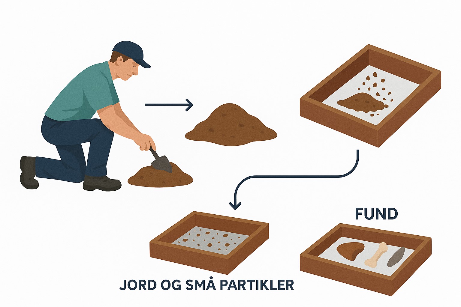 Arkæologerne bruger et væld af forskellige metoder og redskaber, når de graver i jorden for at finde spor efter kulturer i oldtiden. Se oversigten herunder