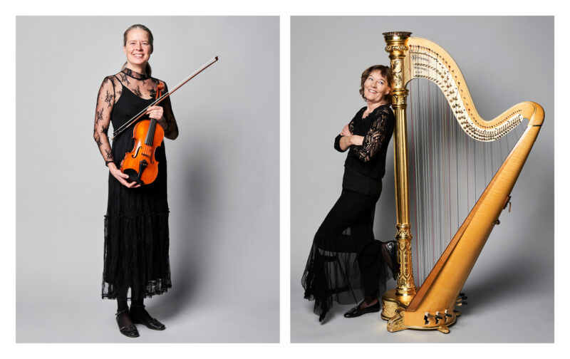 Kom forbi og oplev Mette Nielsen på harpe og Else Marie Tolbøll på violin. De optræder kl. 13.00, 14.00 og 15.00.